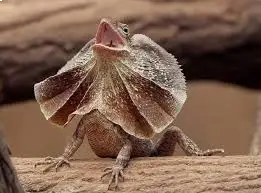 Esta piel se encuentra normalmente replegada a los lados del cuerpo del lagarto pero cuando se siente asustado el reptil abre la boca y deja al descubierto este increíble forro brillante y levanta su cuerpo.